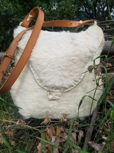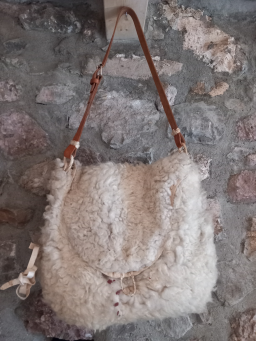 Elaborado con una piel de cordero,oveja de menor calidad,trozos,retales ya que no requeria una piel tan buena como la motxilla / zurron.