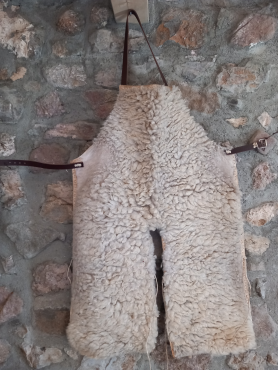 Pieza de piel de oveja elaborada por los propios pastores destinada a cubrir por delante al pastor del frio y la lluvia hasta practicamente las rodillas,perdida hace aprox.70 años; en deshuso actualmente.